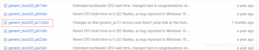 选择你的STM32最小系统板的除电源指示灯外的另一个LED所对应的接口名字的文件下载(一定要选择对应的),我的板子为PC13,所以下载这个: