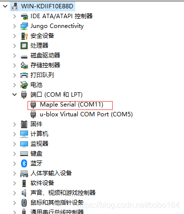 然后将开发板的串口线断开,将开发板BOOT0接GND后,使用手机数据线连接开发板MicroUSB和电脑USB开始安装驱动,会发现一个新的USB串行设备,下面为COM11