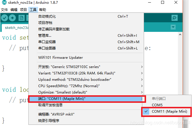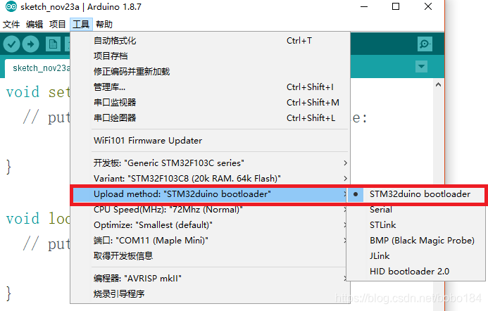 将Arduino IDE的上传方式设置为STM32duino bootloader